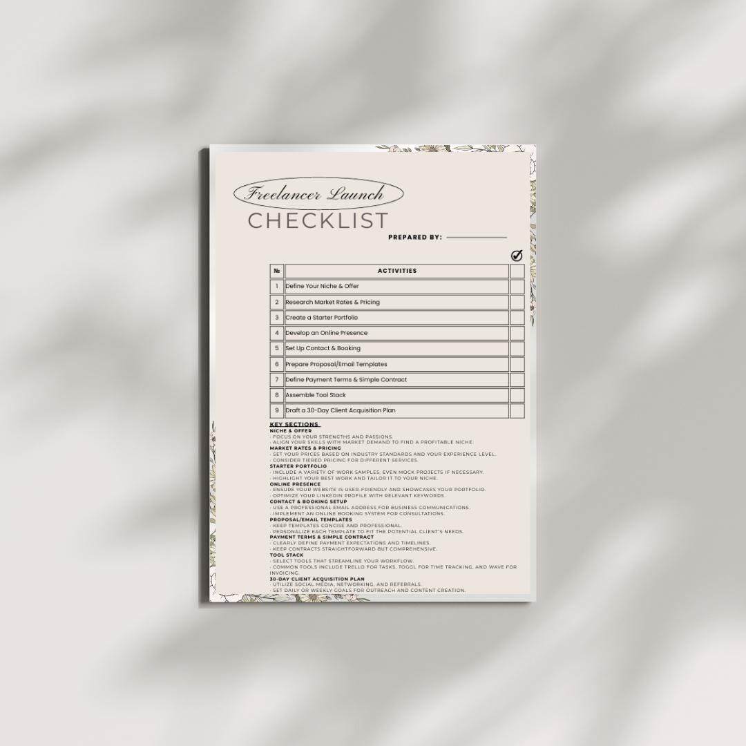1 x Printable Freelancer Launch Checklist (PDF, instant download)